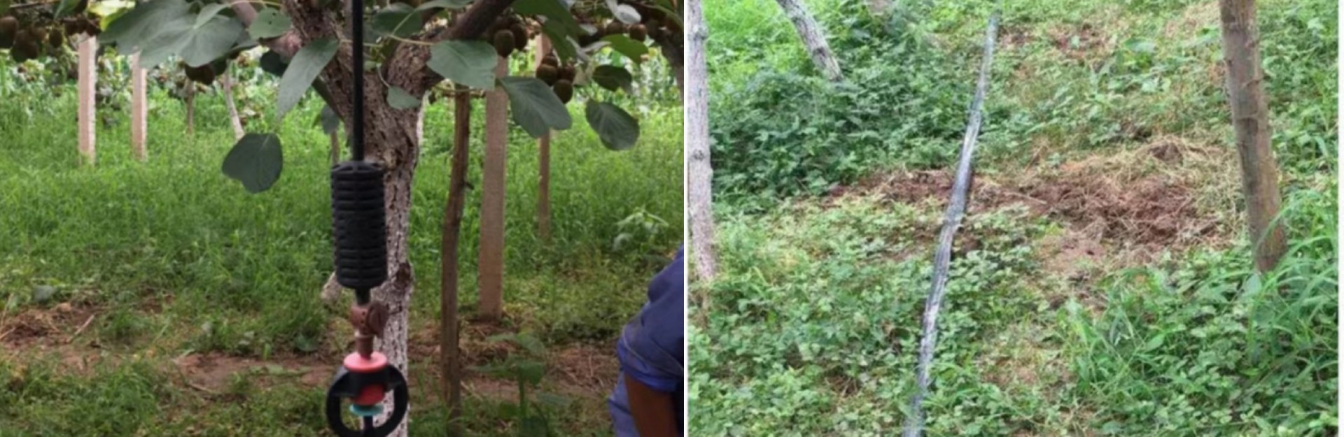 根據獼猴桃植株的特殊性,結合我司現場勘測數據,為甲方設計了噴灌與滴灌相結合的設計方案。吊掛微噴為獼猴桃除蟲保果實現智能控制,滴灌為植株夏天缺水保障,兩兩結合,實現獼猴桃全程灌溉的智能化控制。完工交付至今,未出現任何非人為故障,體現了我司系統的穩固性,在甲方反饋情況,為甲方節約了大量的人工費用,并且19年產量有大幅提高。