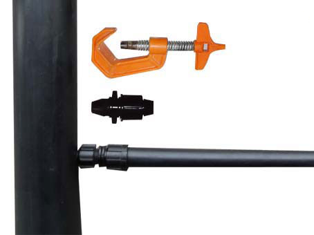 介紹:用打孔器在主管上打孔后,將旁通安裝在主管上,再將滴灌帶連接,此連接簡單可靠。