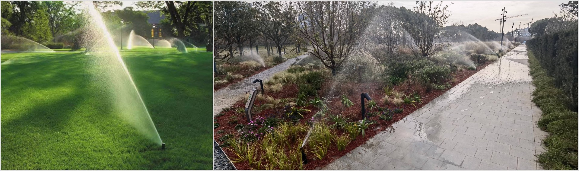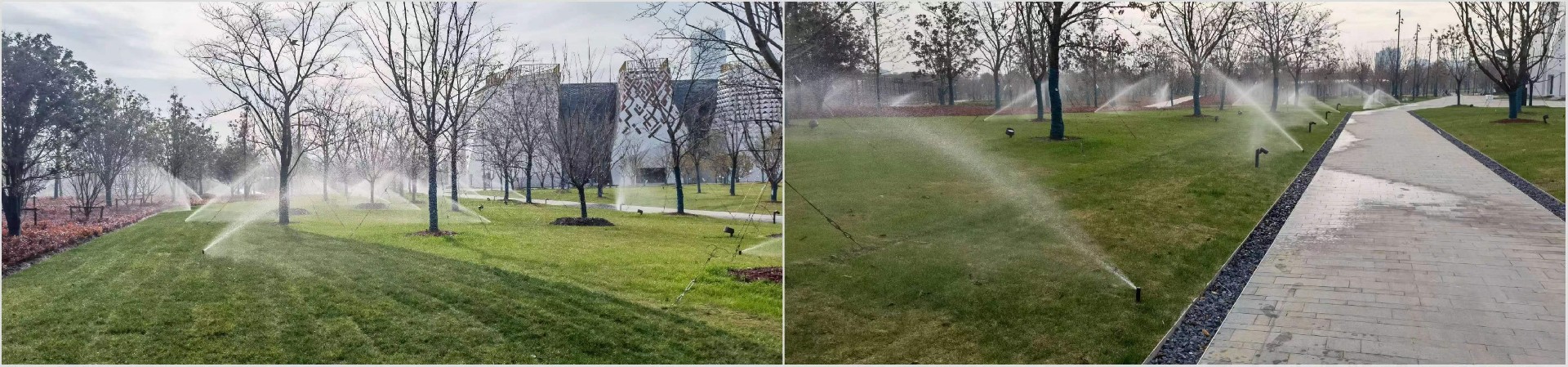 介紹:園林綠化灌溉多用于道路兩旁、小區、樓盤、醫院、酒店、公園等等區域。水源一般選擇市政自來水或者打井地下水及雨水收集池等來就行增壓灌溉,可實現實時、定時、延時編程灌溉亦可通過數據采集傳感器采集的數據進行甄別智能灌溉以大大減少綠化植物的養護成本及提高成活率。目前我司提供的三種園林綠化噴頭主要為散射型噴頭、射線型噴頭、齒輪驅動型噴頭。每種類別的噴頭又可根據實際地形配置不同的噴嘴噴灑距離控制,可實現不限地形,不限地勢的配置最佳型號。同時,園林綠化灌溉控制系統我根據不同的需求分為多種類型,可根據項目實際情況配置選擇。